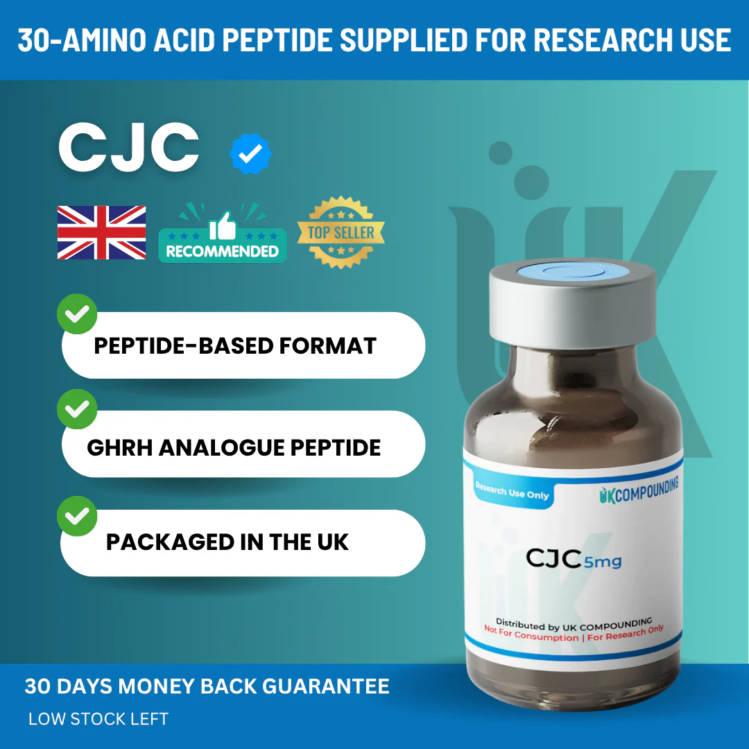 CJC – 5mg: 30-amino acid peptide studied for growth hormone stimulation.