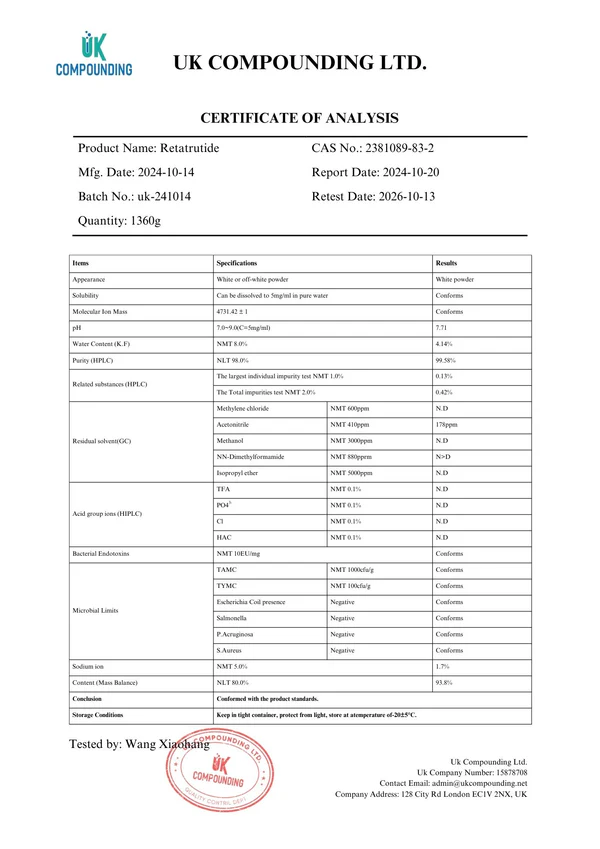 Retatrutide from a UK compounding delivered exactly what I hoped for in my research. A top-tier peptide without any fillers from a top-tier supplier.